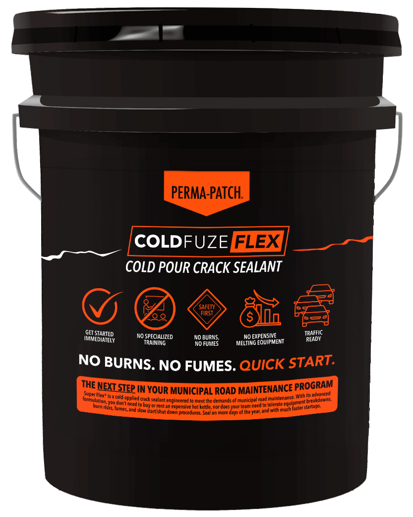 ColdFuze Flex™ in a 5-gallon pail is a cold-applied crack sealant engineered to meet the demands of municipal road maintenance. With its advanced formulation, you don’t need to buy or rent an expensive hot kettle, nor does your team need to tolerate equipment breakdowns, burn risks, fumes, and slow start/shut down procedures. Seal on more days of the year, and with much faster startups.